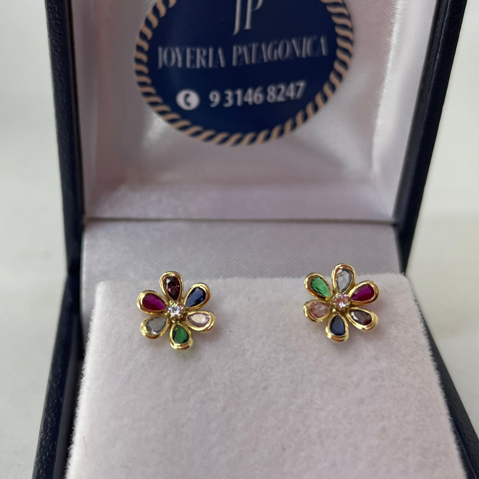 Hermosos aros de niña de oro 18k y circones de Colores.