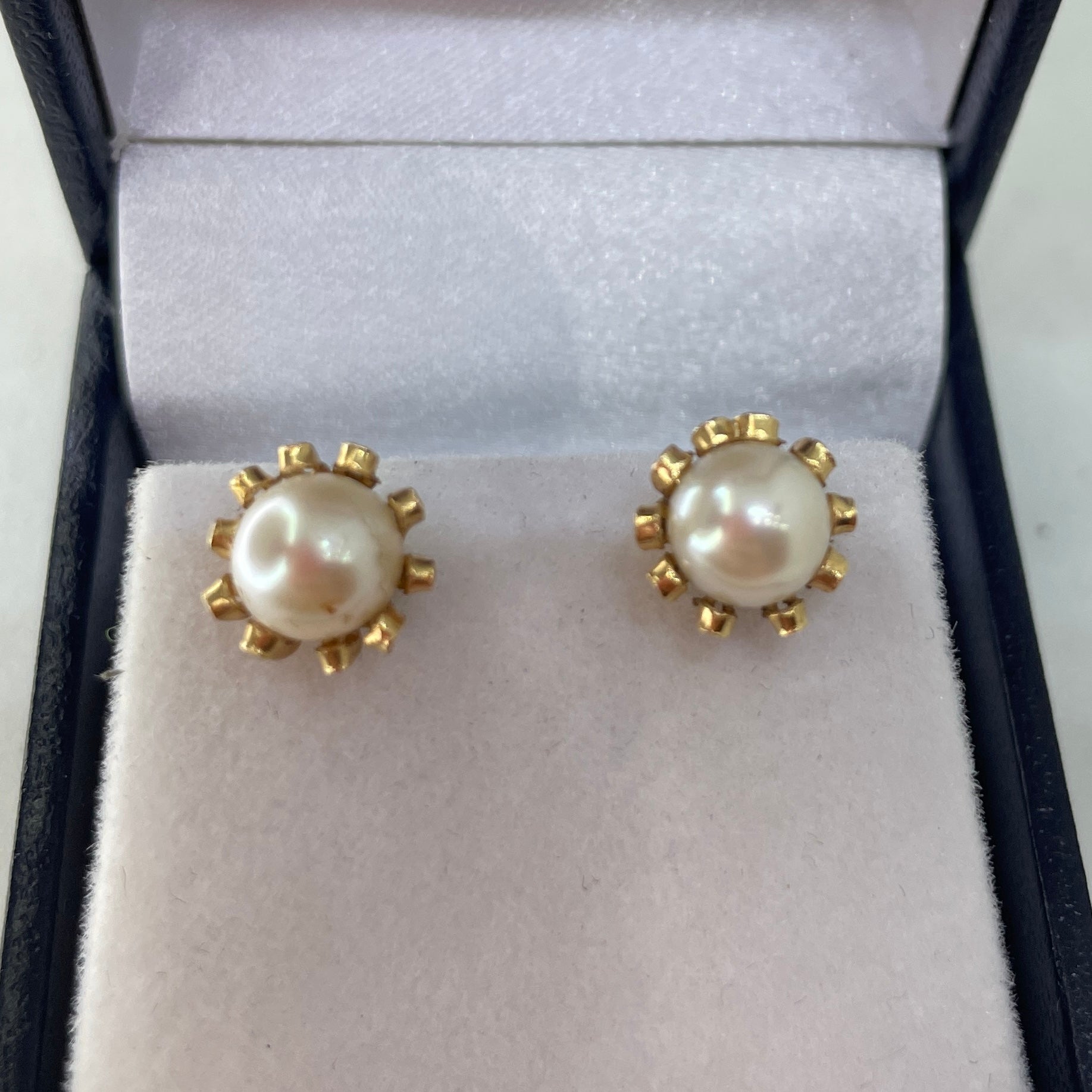 Delicados Aros de Perlas Cultivadas Blancas Rosadas, 8mm tipo Cuello Payaso 18k